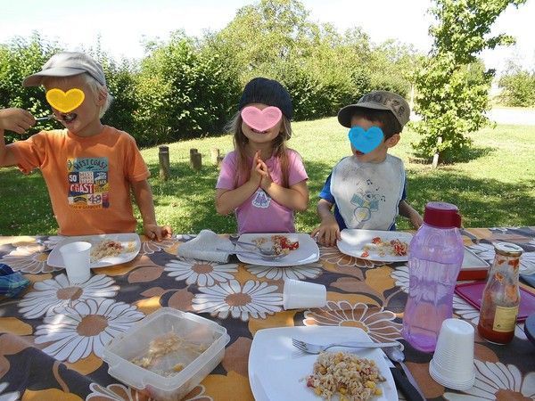 Aujourd'hui c'est le grand jour... j'emmène ma petite troupe (Maxence, Lucas et Annaëlle) pique - niquer sur l'air de jeux de Saint-Sornin.