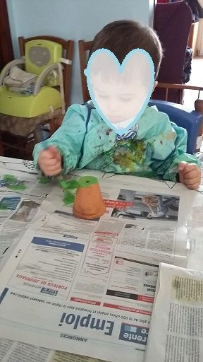 Comme Axel passe la journée avec Mathéo, ils ont collé ensemble des gommettes fleurs.